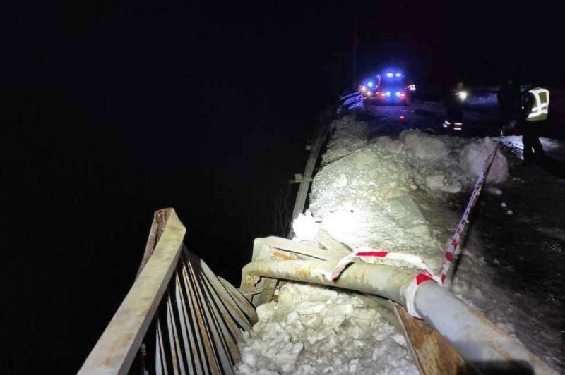 Как сообщают источники, по неустановленной на данный момент причине грузовой автомобиль пробил ограждение моста и упал в реку Десна.