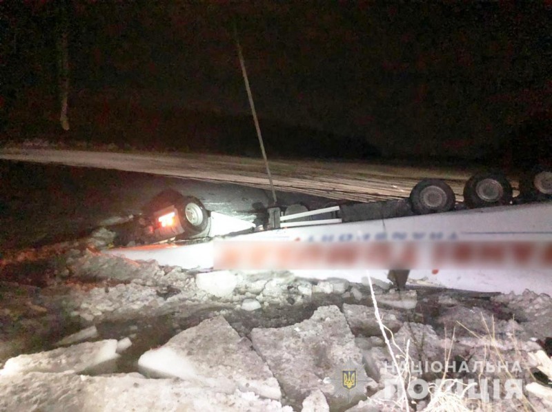 В Черниговской области фура сорвалась в реку. Появилось видео