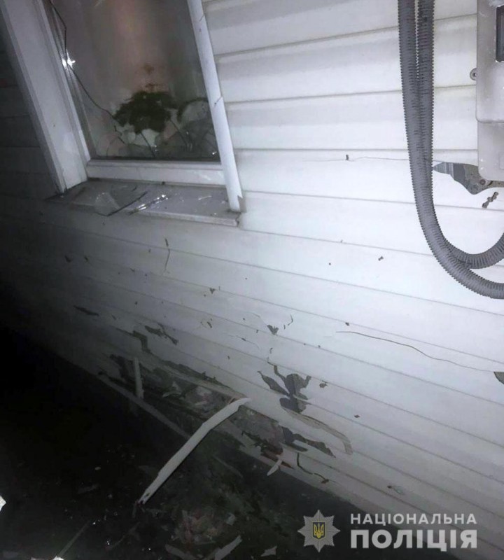 Как сообщают источники, прибывшие на место происшествия полицейские установили, что взрывом неизвестного предмета были повреждены стена и остекление дома.