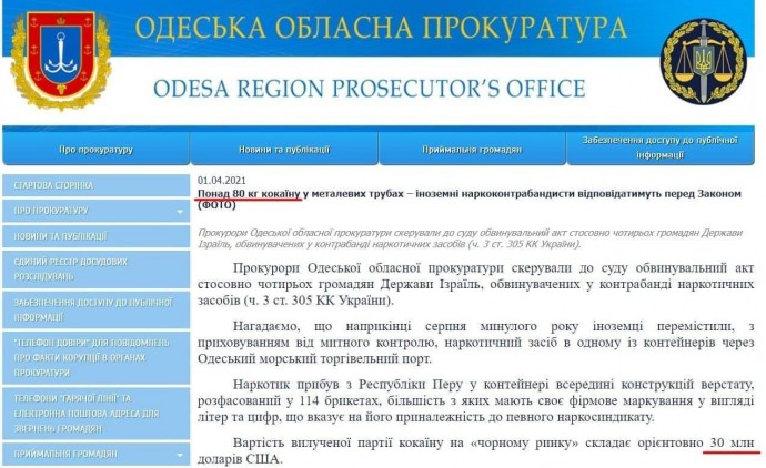 Однако 1 апреля в ведомстве указали, что направили в суд обвинительный акт по контрабанде лишь 80 кг кокаина стоимостью $30 млн. В пресс-службе прокуратуры объяснили что 80 кг – это вес чистого кокаина «после проведенной экспертизы».