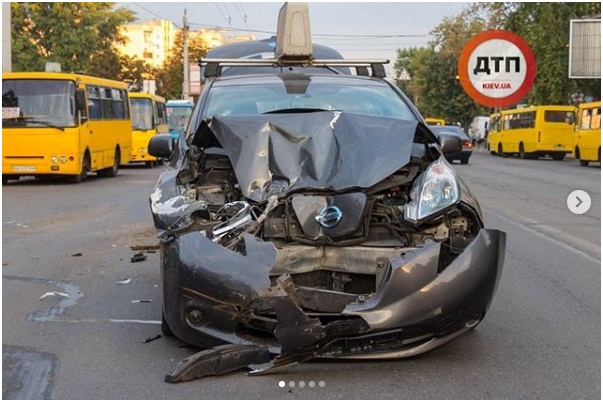 Сегодня в утреннее время в Киеве на проспекте Свободы произошло столкновение маршрутного автобуса «Богдан» и автомобиля Nissan Leaf службы такси Uber. Вот что стало известно изданию «Криминал»