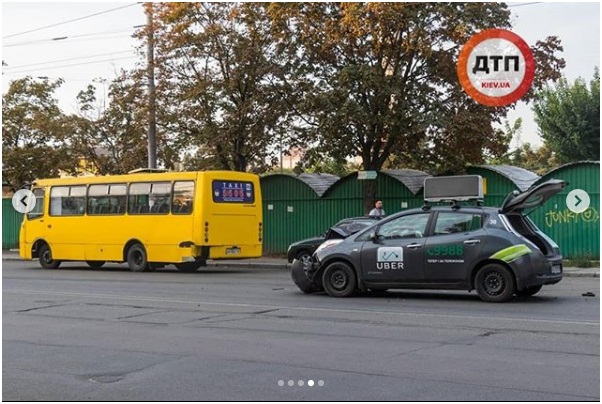 Как сообщают источники, сегодня 3 сентября, в утреннее время, 06:30, в Киеве на проспекте Свободы, 20 произошло столкновение маршрутного автобуса «Богдан» №455 и Nissan Leaf службы такси Uber под управлением девушки-водителя. По имеющейся информации автомобили двигались в направлении проспекта Павды. Маршрутка начала притормаживать, а водитель такси не заметила маневра. Она предприняла попытку уйти от столкновения в последний момент, но безуспешно.