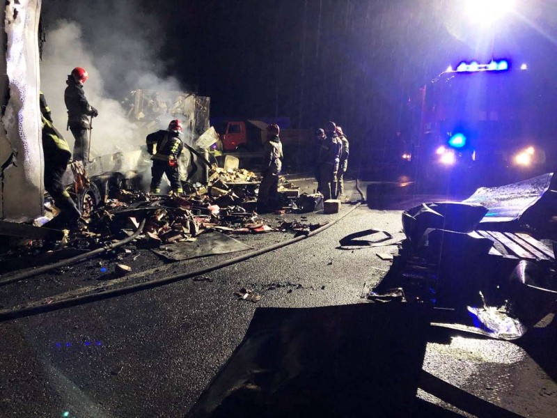 Как сообщают источники, водитель грузового автомобиля не справился с управлением и выехал на встречную полосу движения, где и произошло столкновение с автомобилем Volkswagen. В результате столкновения оба транспортных средства, а также находившийся в прицепе грузового автомобиля груз, загорелись.