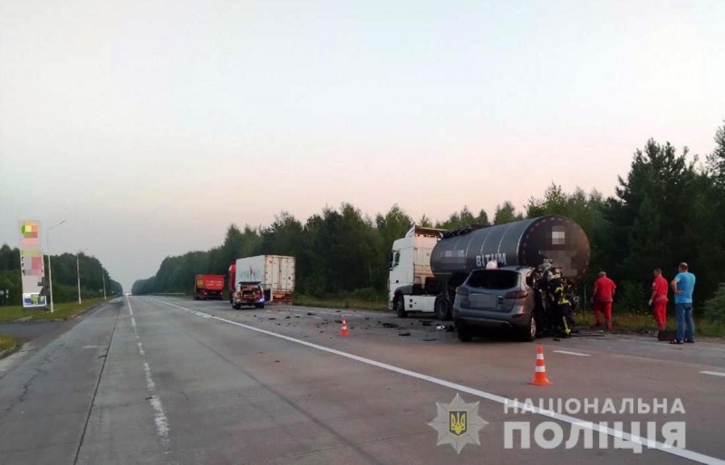 Сегодня, 28 июля 2021 года, около 04:50 на участке трассы Киев – Ковель – Ягодин», проходящем неподалеку от села Головки Малинского района, произошло ДТП с участием автомобиля Hyundai Santa Fe и грузового автомобиля DAF.