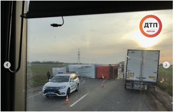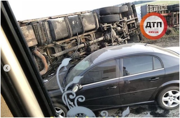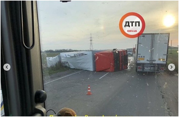 Появилось видео масштабного ДТП с опрокидыванием фуры в районе Борисполя