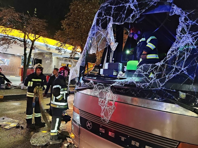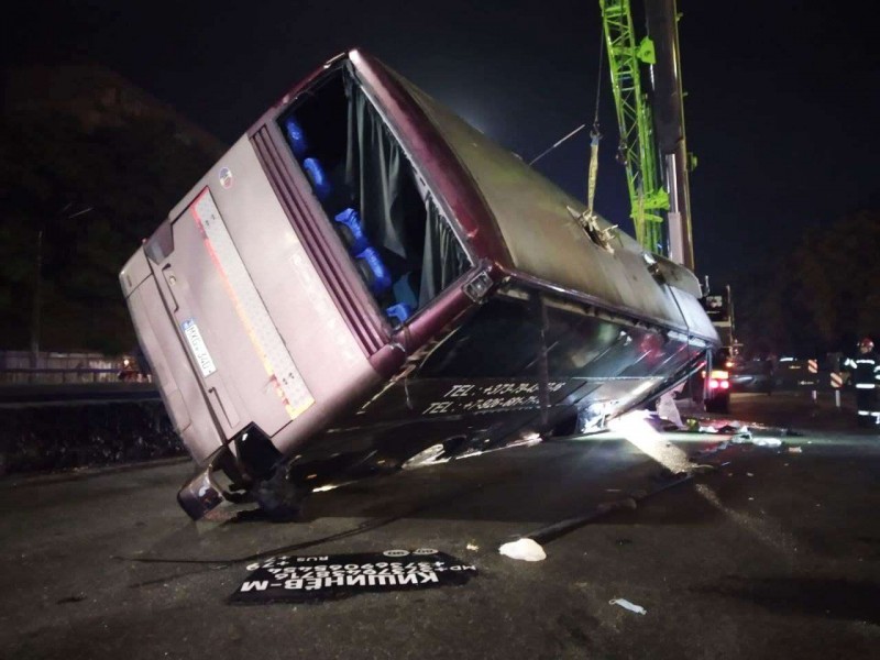 Как сообщают источники, водитель автобуса не справился с управлением и наехал на бордюр, в результате чего автобус, в котором находилось 48 пассажиров и двое водителей, опрокинулся на бок.