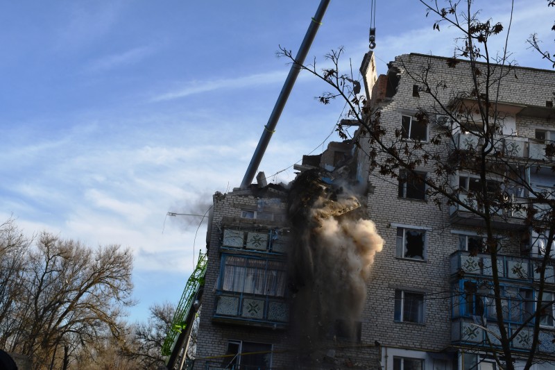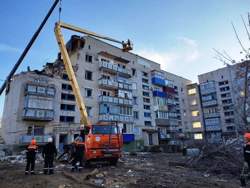 Из квартир разрушенного подъезда эвакуированы 54 жильца.